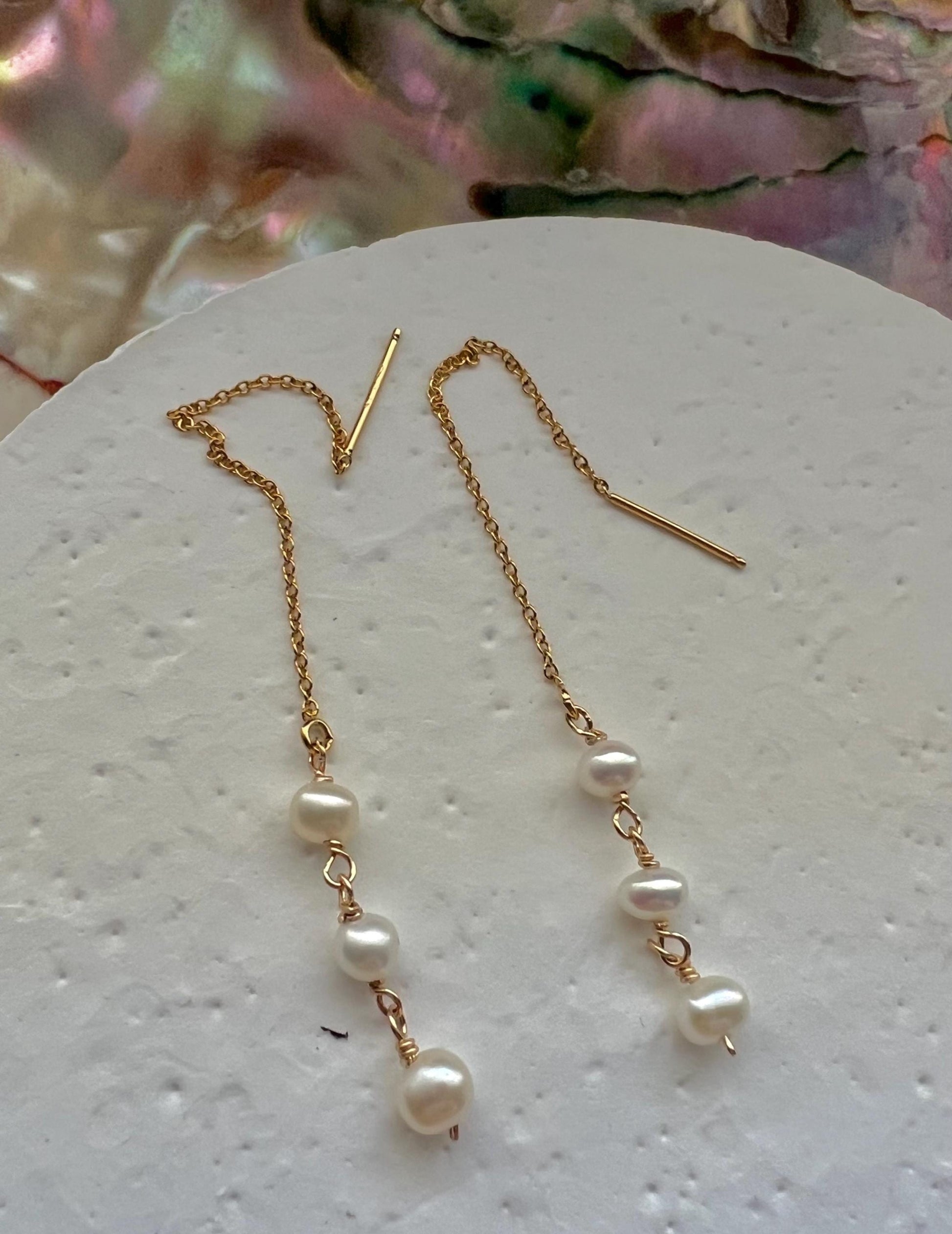 14K gold filled high quality natural freshwater pearl threader/earring,elegant earrings,minimalist earring ,dainty earring