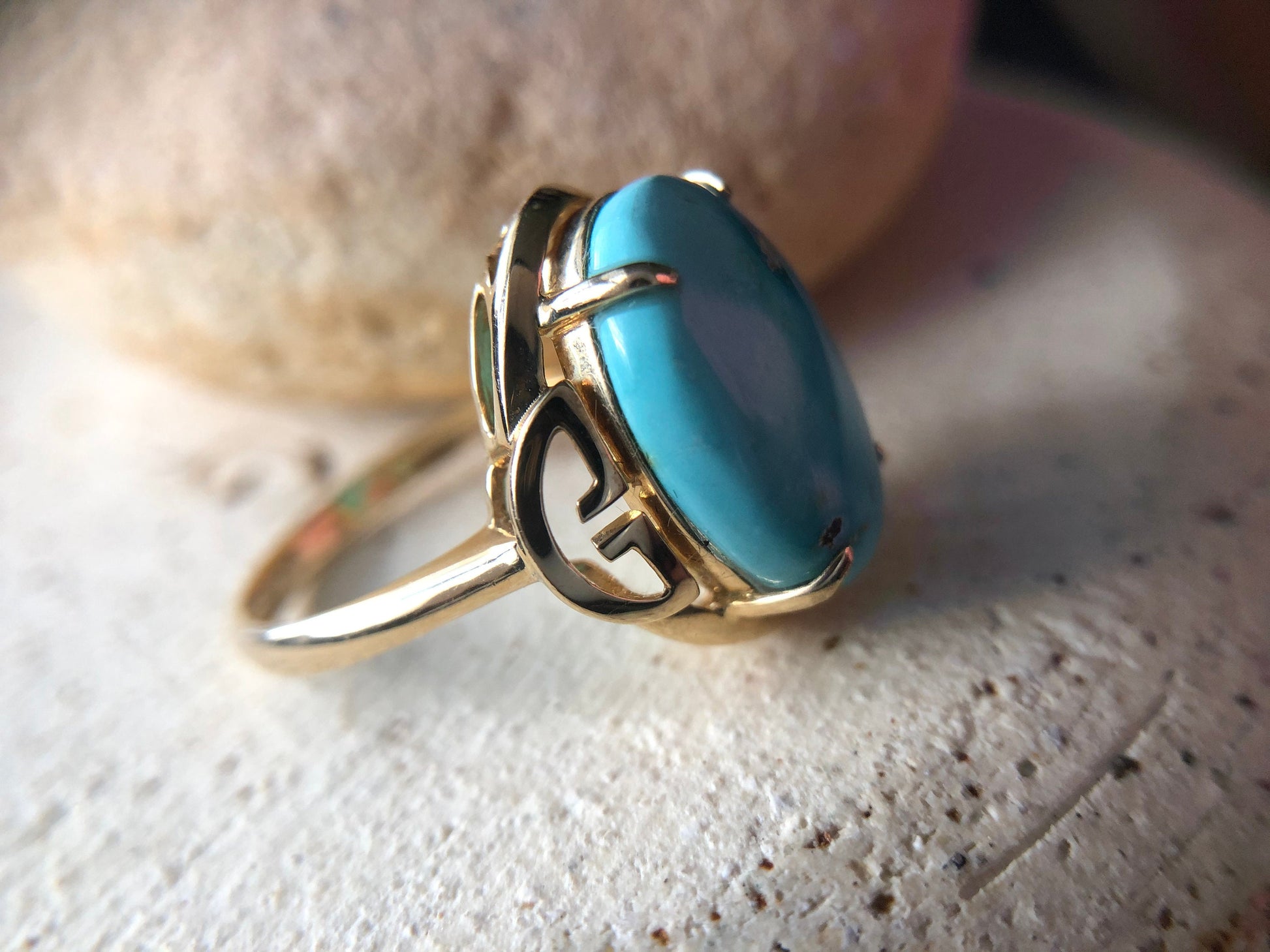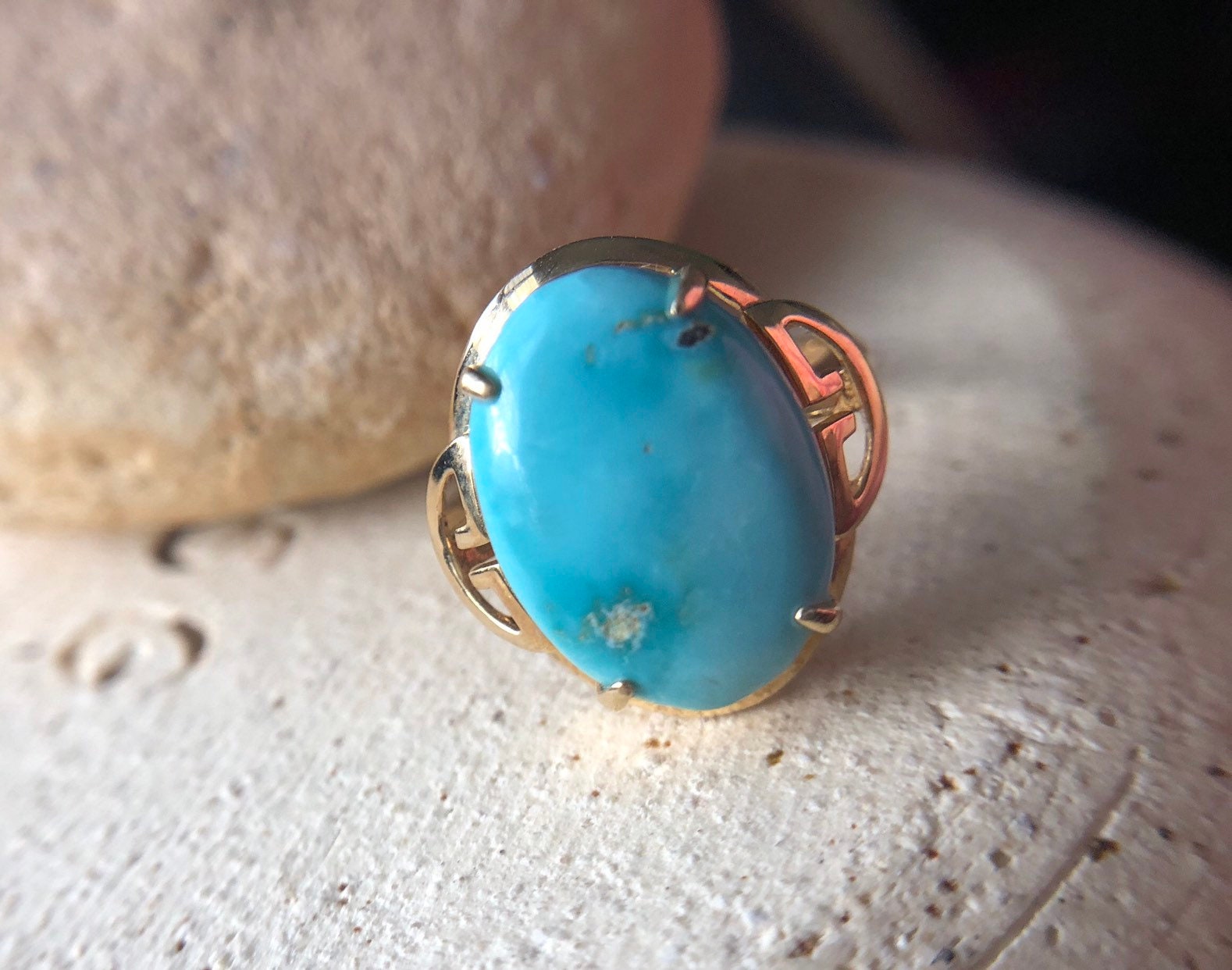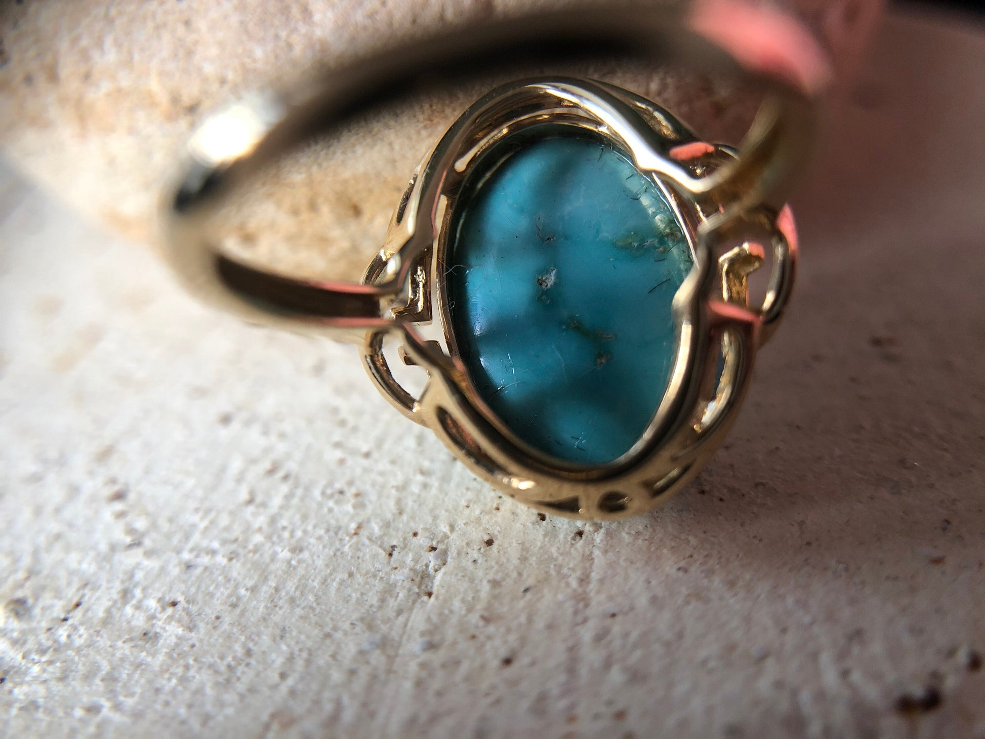 18K solid gold natural turquoise oval ring. Turquoise ring. December Brithstone. Solid 18K Gold Turquoise ring.