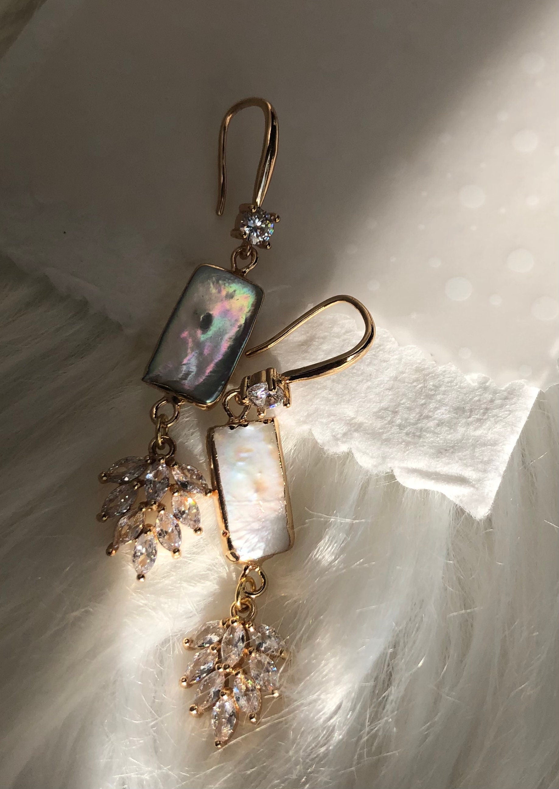 Baroque rectangle pearl crystal dangle earring ,vintage style ZC earring ,gold pearl earring ,France style dope earring ,gift for her