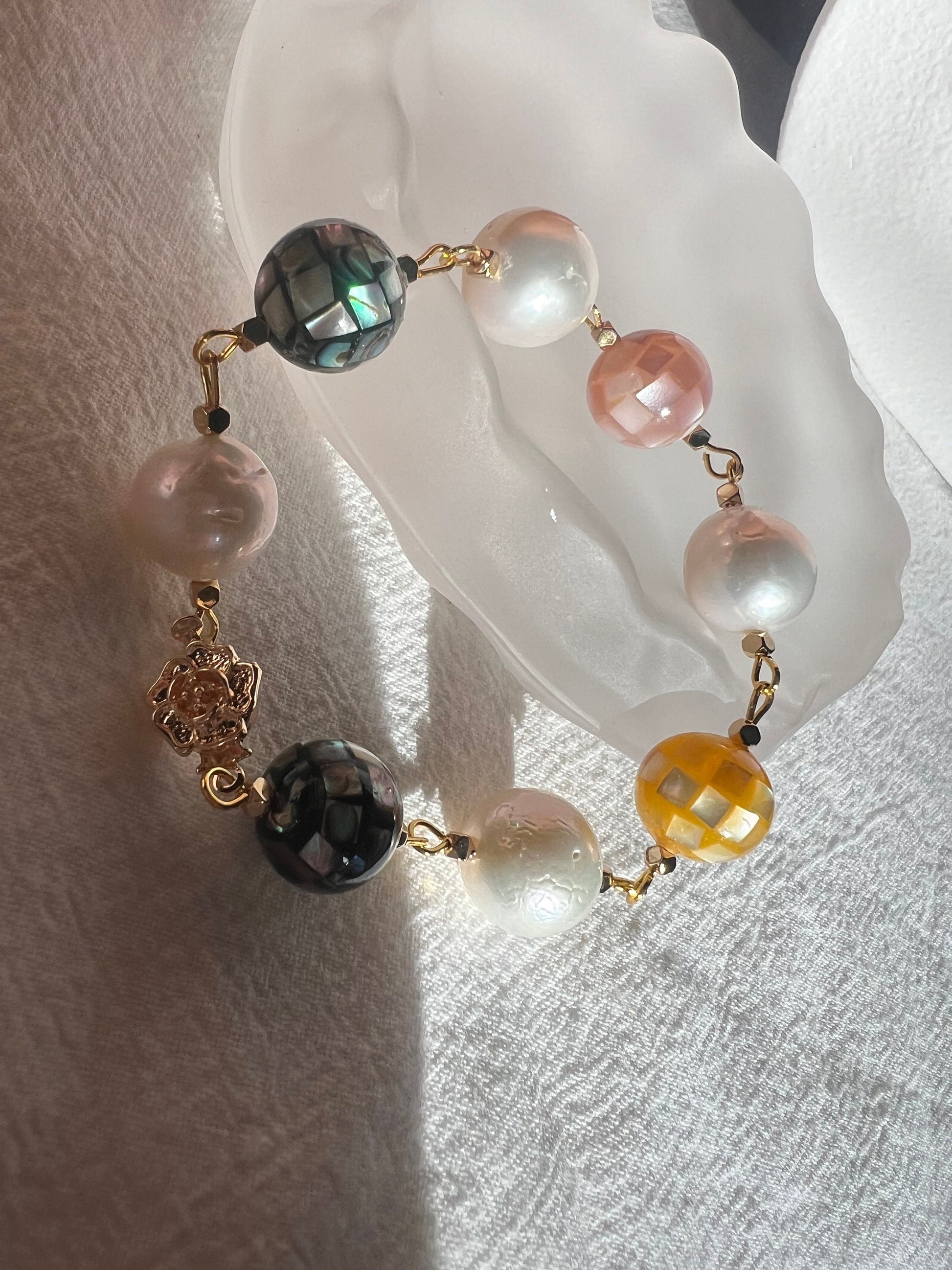 Candy shell ball and freshwater baroque pearls bracelet. Elegant colorful bracelet. Boho bracelet. Gift for her.
