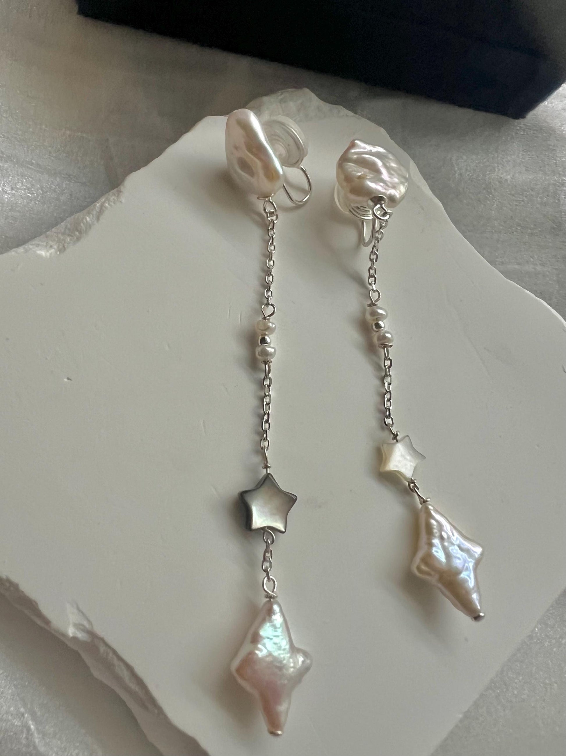 Freshwater baroque pearl long dangle star earrings. Dainty pearl earring. Minimalist pearl earrings. Elegant earring. Wedding earrings