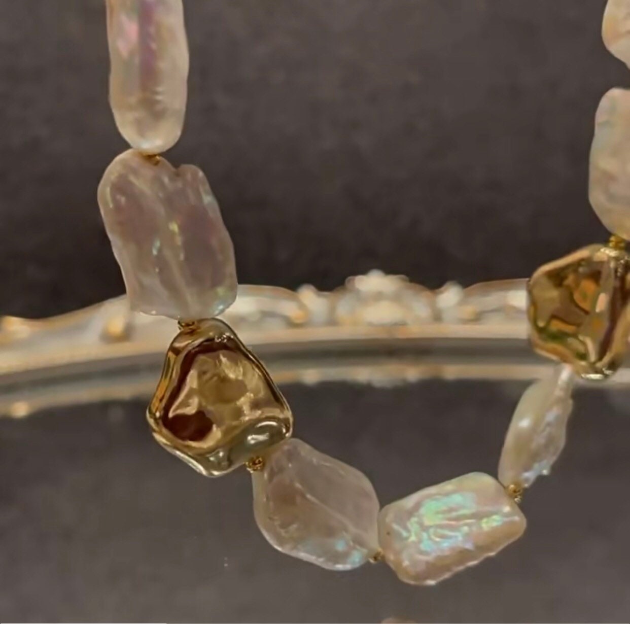 Freshwater baroque rectangular pearl nugget toggle necklace. High luster baroque pearl necklace. Chunky necklace. Gift for her.