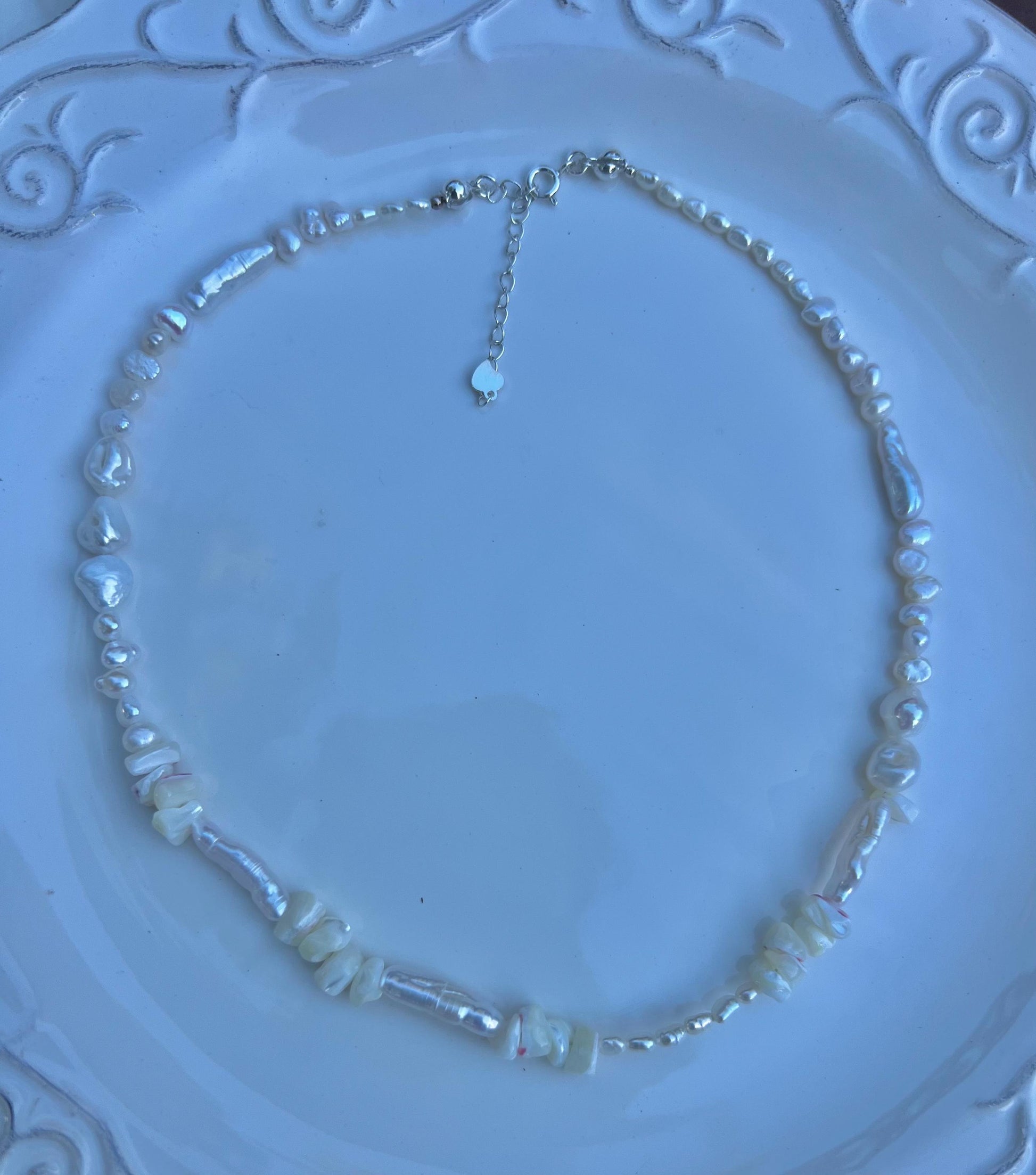 Freshwater multi-shapedpearl necklace. Baroque pearl beaded necklace. Keshi pearl necklace. Nugget pearl choker. Gift for her