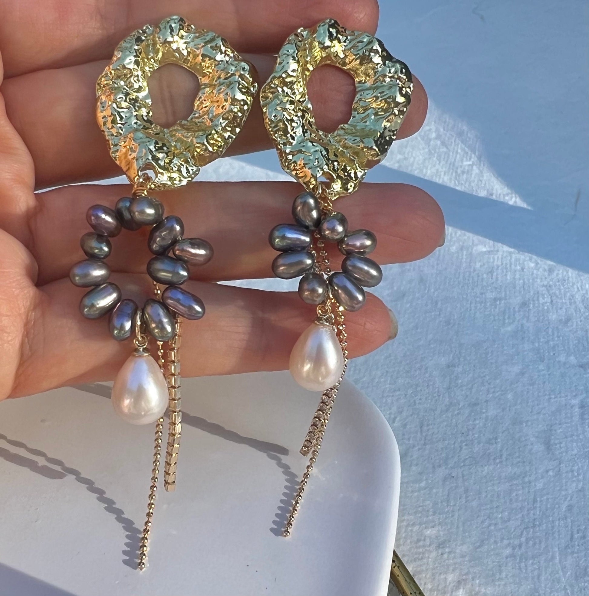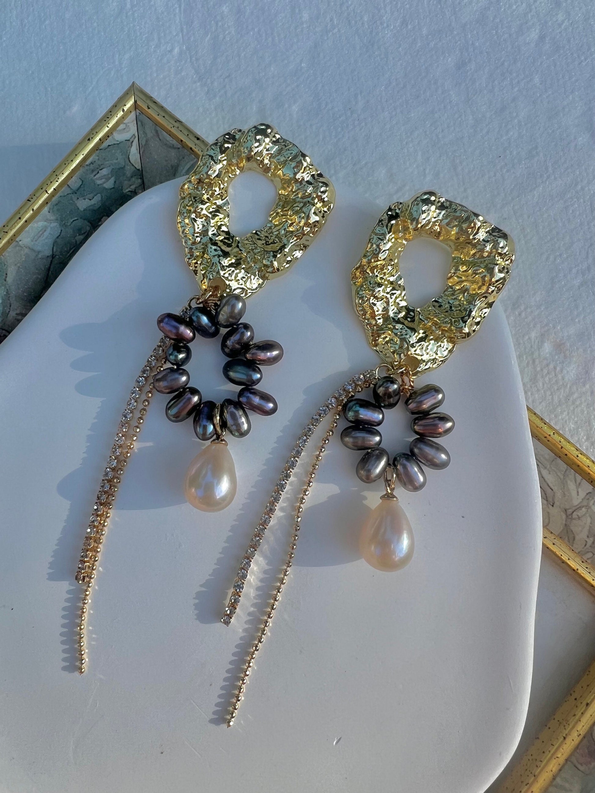 Multicolored freshwater pearl dangle earrings. Art Deco earring. Boho wedding earrings. June birthstone. Chic pearl earrings.
