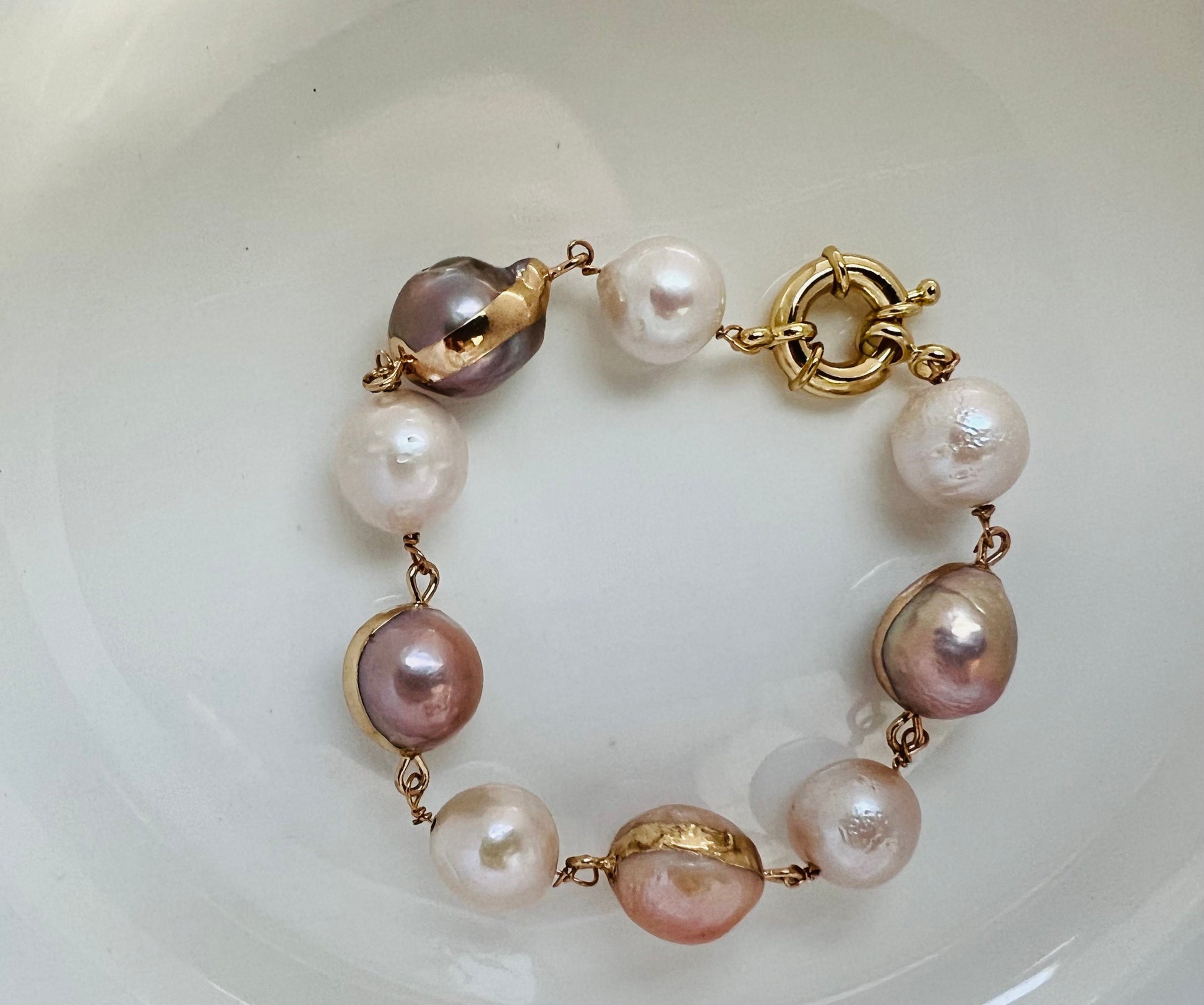 Vintage style freshwater pearl bracelet. Multiple-col freshwater baroque pearl bracelet. Chunky bracelet. Adorable bracelet. Boho